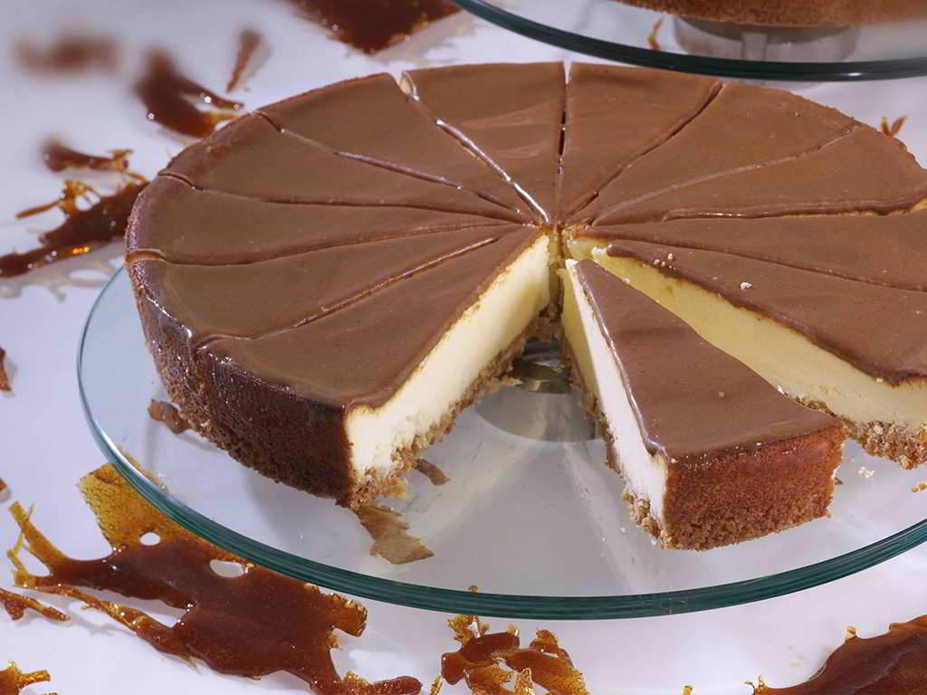 Cheese cake al caramello .Pretagliata in 14 Fette