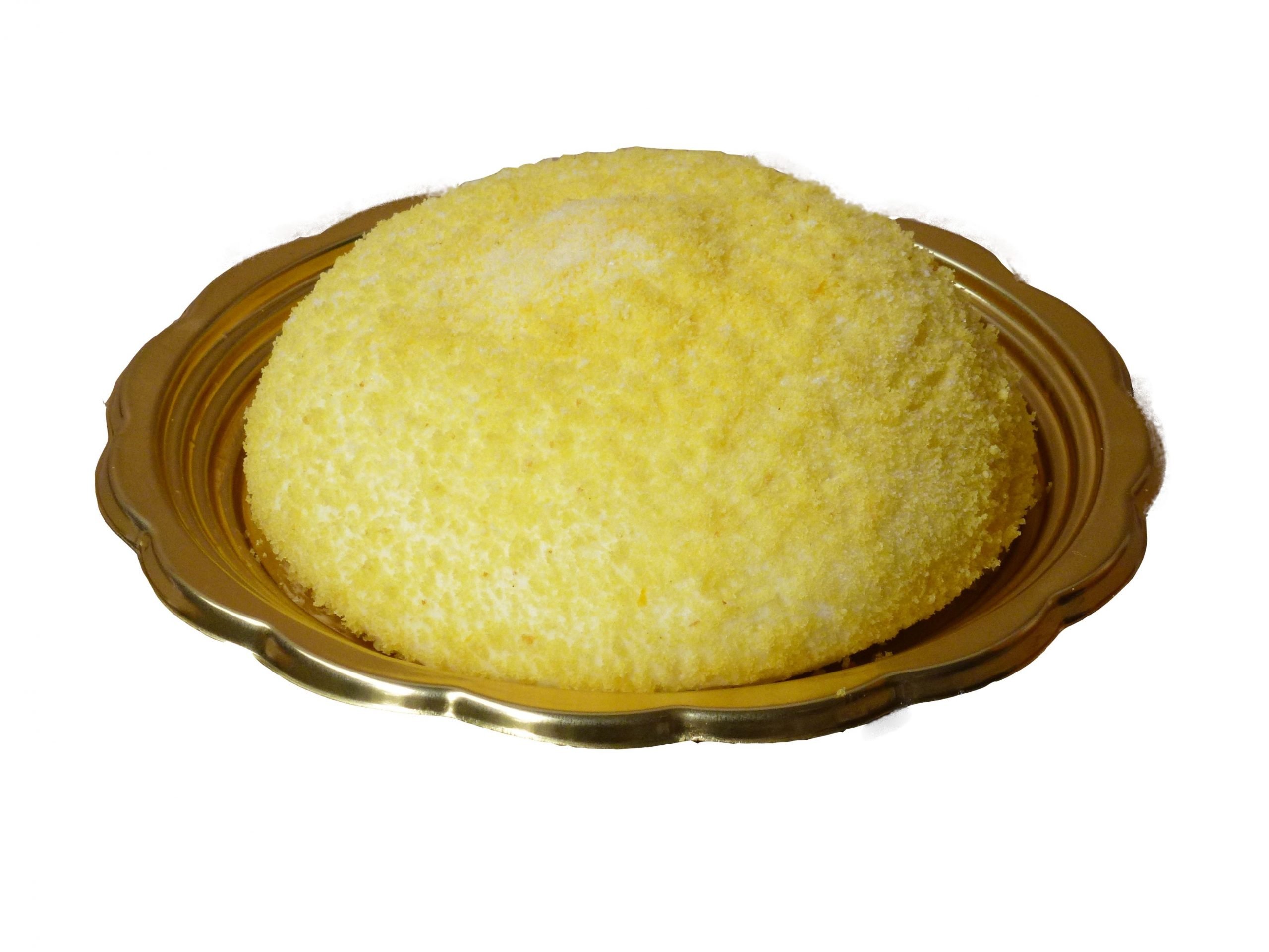 Un fresco dessert composto da tre strati di pan di spagna bagnati all’Alchermes, farcito con crema allo zabaione e crema al cacao, decorato con pan di spagna tritato che ricorda nella sua forma la polenta sul tagliere (tipica usanza Veneta).
